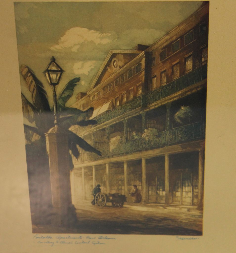 756 Pair of 1930’s Illinois Central Railroad prints of Historic New Orleans Landmarks by artist Al Wettel