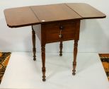 19th century two drawer cherry drop leaf side table.; Table- 18" w., 22" d., 29" h.; 2 leaves- 12" 19th century two drawer cherry drop leaf side table.; Table- 18" w., 22" d., 29" h.; 2 leaves- 12"