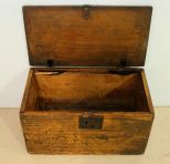 Small pine trunk with old original newspaper in the bottom.; 26 1/2" w., 14" d., 15" h. Small pine trunk with old original newspaper in the bottom.; 26 1/2" w., 14" d., 15" h.