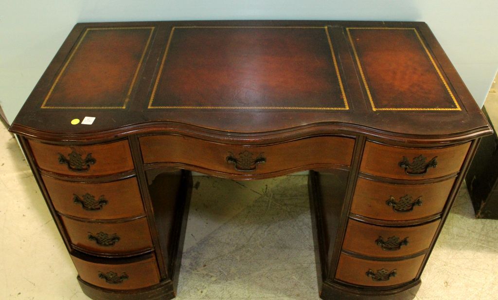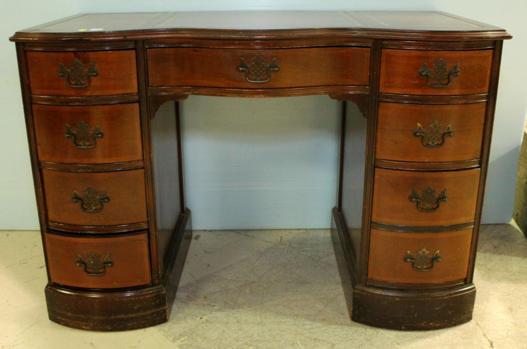 Leather top desk with four drawers on each side of center drawer.; 44" w., 22" d., 30" h. Leather top desk with four drawers on each side of center drawer.; 44" w., 22" d., 30" h.