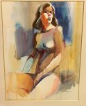Large watercolor of lady signed Don Andrews ( Fairhope, Alabama artist).; 31" w., 38" h. Large watercolor of lady signed Don Andrews ( Fairhope, Alabama artist).; 31" w., 38" h.
