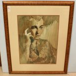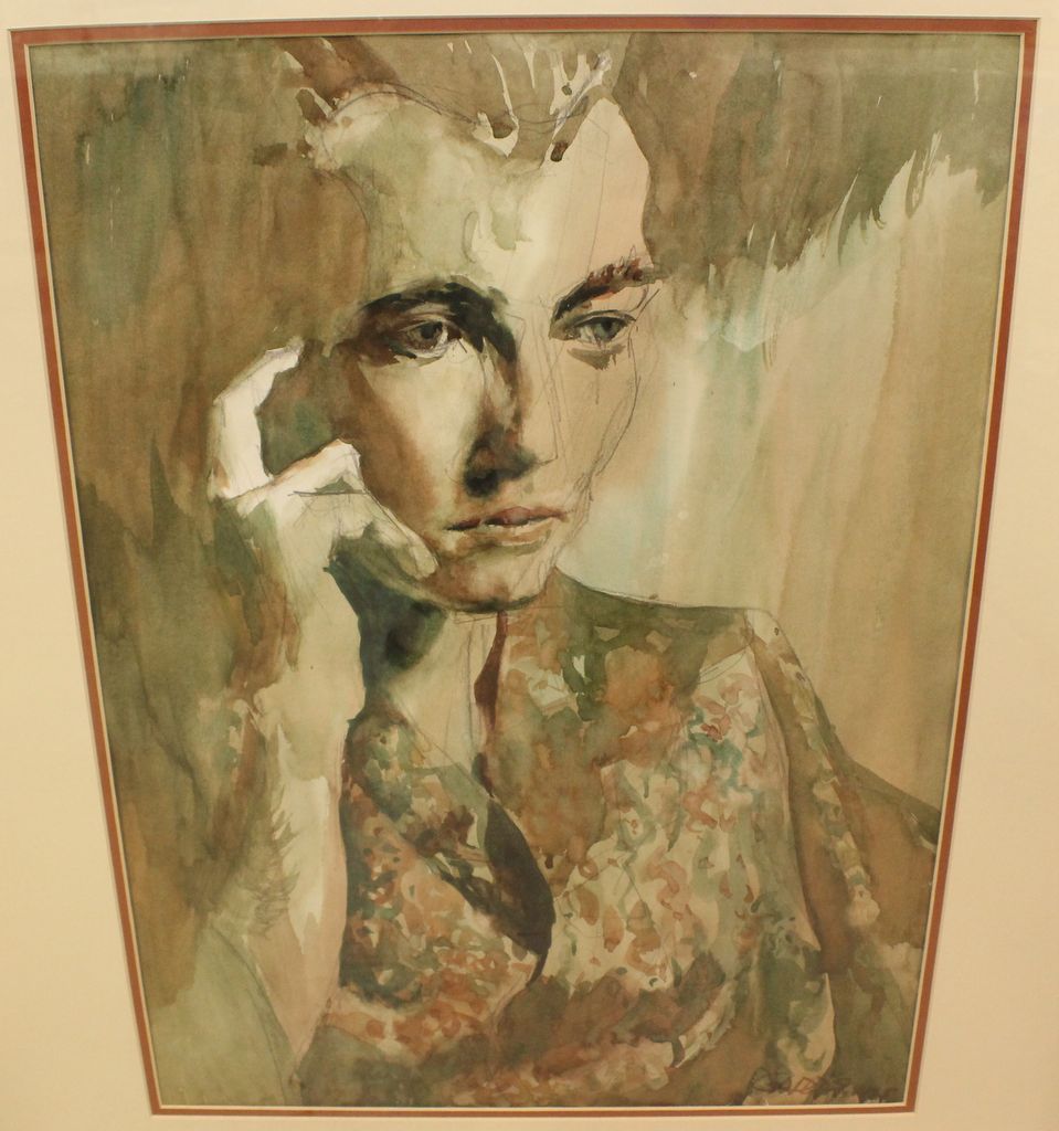 Large watercolor of lady signed John Gaddis, Mississippi artist who is a member of Mississippi Watercolor Society, info on back.; 28" w., 34" h. Large watercolor of lady signed John Gaddis, Mississippi artist who is a member of Mississippi Watercolor Society, info on back.; 28" w., 34" h.