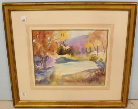 Watercolor of stream signed Edwina Goodman. 25 1/2" w., 23" h. Watercolor of stream signed Edwina Goodman. 25 1/2" w., 23" h.