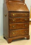 Hickory Chair Company burl walnut small cabinet with top section having three shelves, lower section has fall front (fitted interior) and four drawers.; 22" w., 16 1/2" d., 74" h. Hickory Chair Company burl walnut small cabinet with top section having three shelves, lower section has fall front (fitted interior) and four drawers.; 22" w., 16 1/2" d., 74" h.