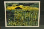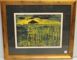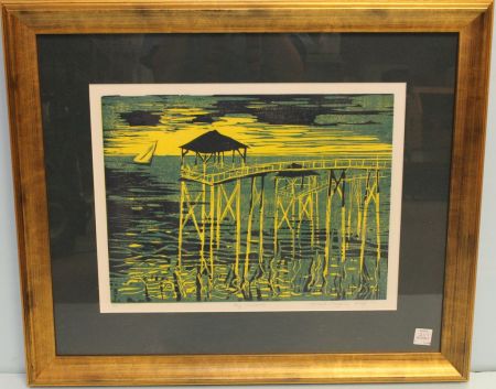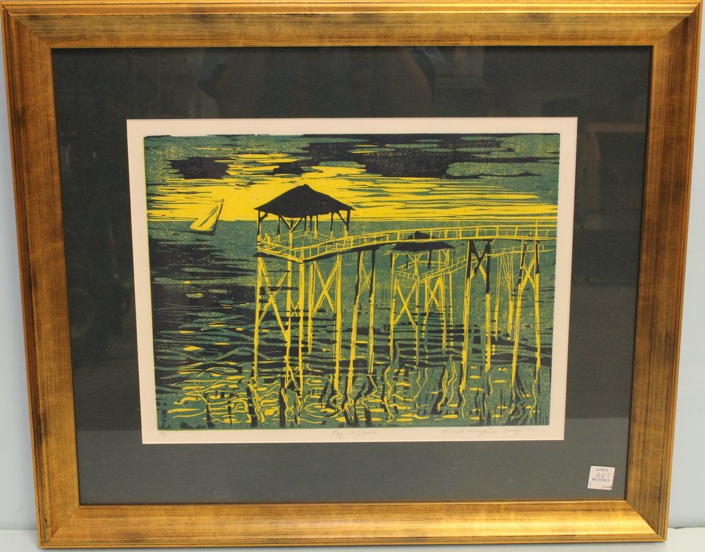 Woodblock print signed Mildred Nungester Wolfe '02, Bay St. Louis.; 26 1/2" w., 22" h. Woodblock print signed Mildred Nungester Wolfe '02, Bay St. Louis.; 26 1/2" w., 22" h.