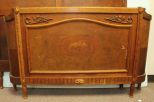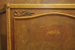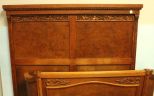 Standard size walnut bed with egg and dart carving over grape leaf carving with rounded footboard.; 57" h. Standard size walnut bed with egg and dart carving over grape leaf carving with rounded footboard.; 57" h.