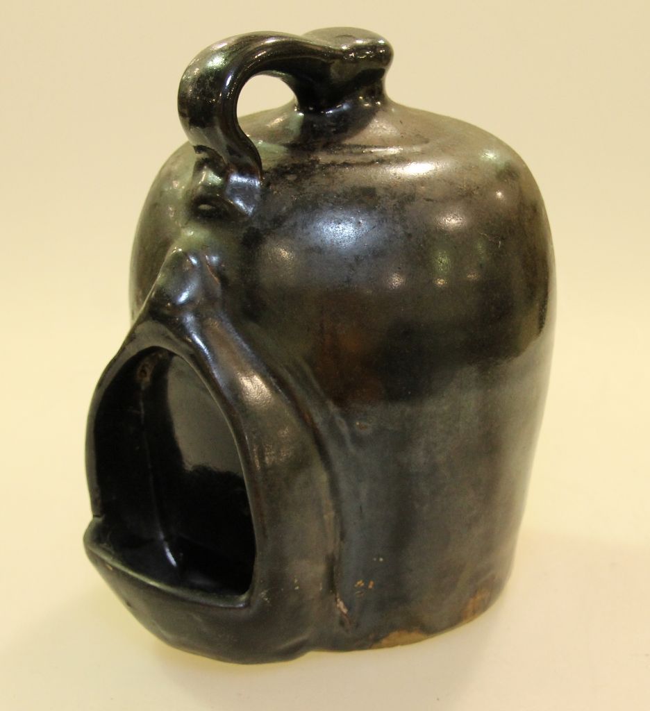 Antique folk art pottery chicken water jug.; 9" h. Antique folk art pottery chicken water jug.; 9" h.