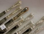 Gracious set of Rocaille sterling French flatware by Ercuis. Each piece of flatware is crafted from the highest quality solid silver and detailed with a scroll pattern. Many sets have been used in Embassies and fine hotels. This lot consists of eight five piece place settings. Eight dinner forks, eight salad forks, eight teaspoons, eight tablespoons & eight knives Gracious set of Rocaille sterling French flatware by Ercuis. Each piece of flatware is crafted from the highest quality solid silver and detailed with a scroll pattern. Many sets have been used in Embassies and fine hotels. This lot consists of eight five piece place settings. Eight dinner forks, eight salad forks, eight teaspoons, eight tablespoons & eight knives