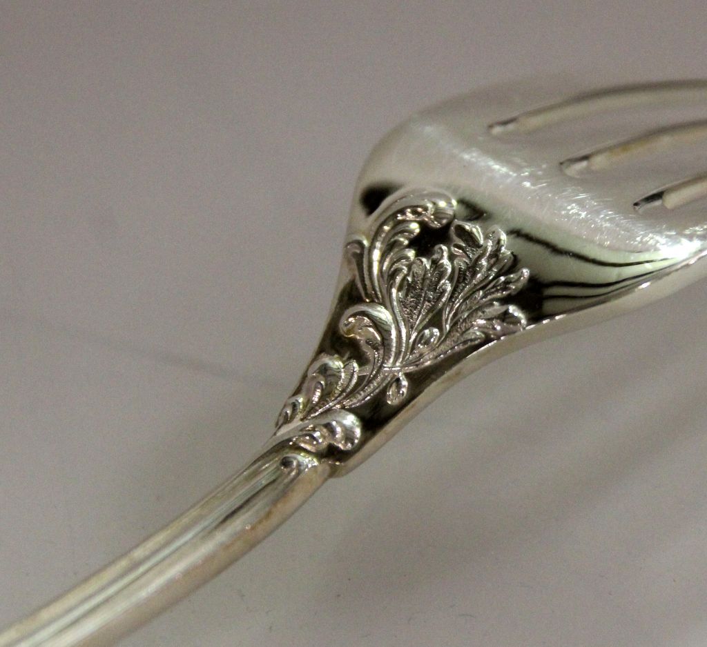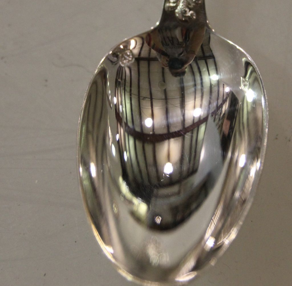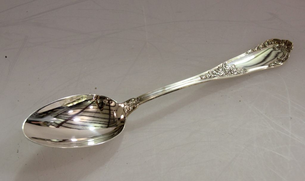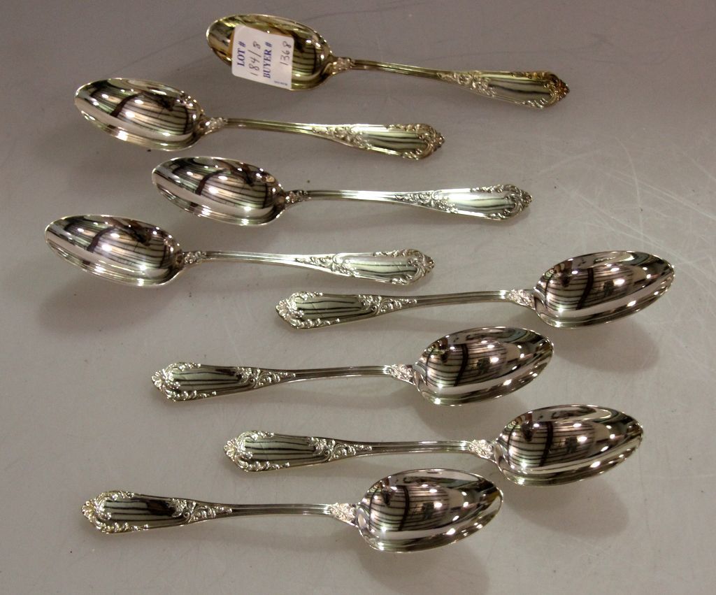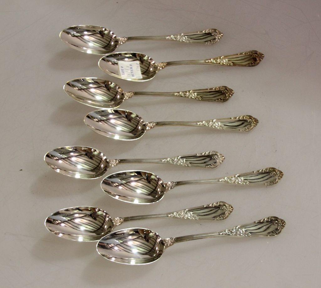 Five place setting for six in Rocaille sterling flatware by Erquis consisting of six dinner forks, six salad forks, six tablespoons, six teaspoons & six knives Five place setting for six in Rocaille sterling flatware by Erquis consisting of six dinner forks, six salad forks, six tablespoons, six teaspoons & six knives