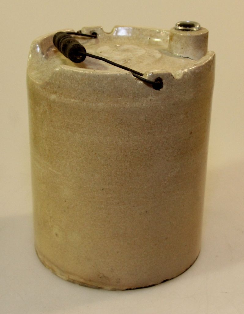 One gallon jug with handle, A.J.W. patent applied for on top.; 7 1/2" dia., 8 1/4" h. One gallon jug with handle, A.J.W. patent applied for on top.; 7 1/2" dia., 8 1/4" h.