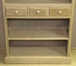 Grey open front bookcase with three drawers in the center.; 42" w., 86" h., 17" d. Grey open front bookcase with three drawers in the center.; 42" w., 86" h., 17" d.