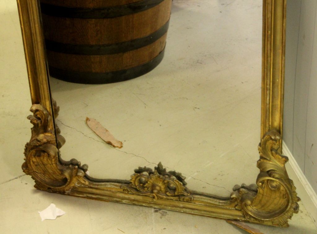 19th Century Gold Gilt Pier Mirror. Rococo style mirror with carved roses, C scrolls and leafage. 34" w., 106" h. 19th Century Gold Gilt Pier Mirror. Rococo style mirror with carved roses, C scrolls and leafage. 34" w., 106" h.