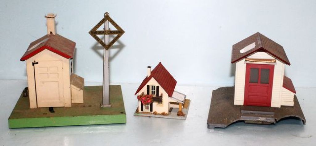 Faller No. 208 House, Lionel Corporation 125 Whistle Station, broken; Lionel Corporation Automatic Gateway Faller No. 208 House, Lionel Corporation 125 Whistle Station, broken; Lionel Corporation Automatic Gateway