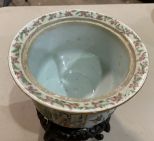 Chinese Famille Rose Style Jardineire, porcelain, wood base, 4"h. Location Metal Shelves Chinese Famille Rose Style Jardineire, porcelain, wood base, 4"h. Location Metal Shelves