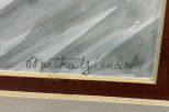 Martha Andre Watercolor of Snowy Day, signed, matted, framed. Location Hanging in Office 12.5" x 9.5" / 22" x 18" framed Martha Andre Watercolor of Snowy Day, signed, matted, framed. Location Hanging in Office 12.5" x 9.5" / 22" x 18" framed