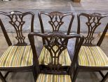 Four Grand Ledge Co. Mahogany Dining Chairs, side chairs, striped cushions. Four Grand Ledge Co. Mahogany Dining Chairs, side chairs, striped cushions.