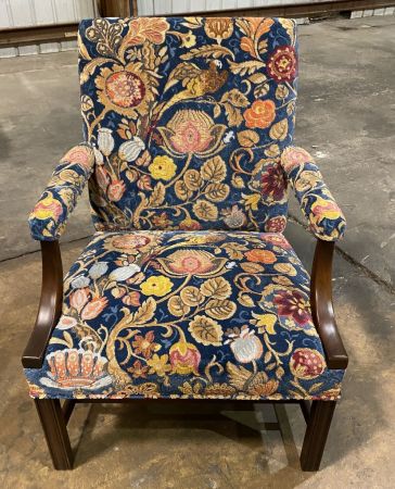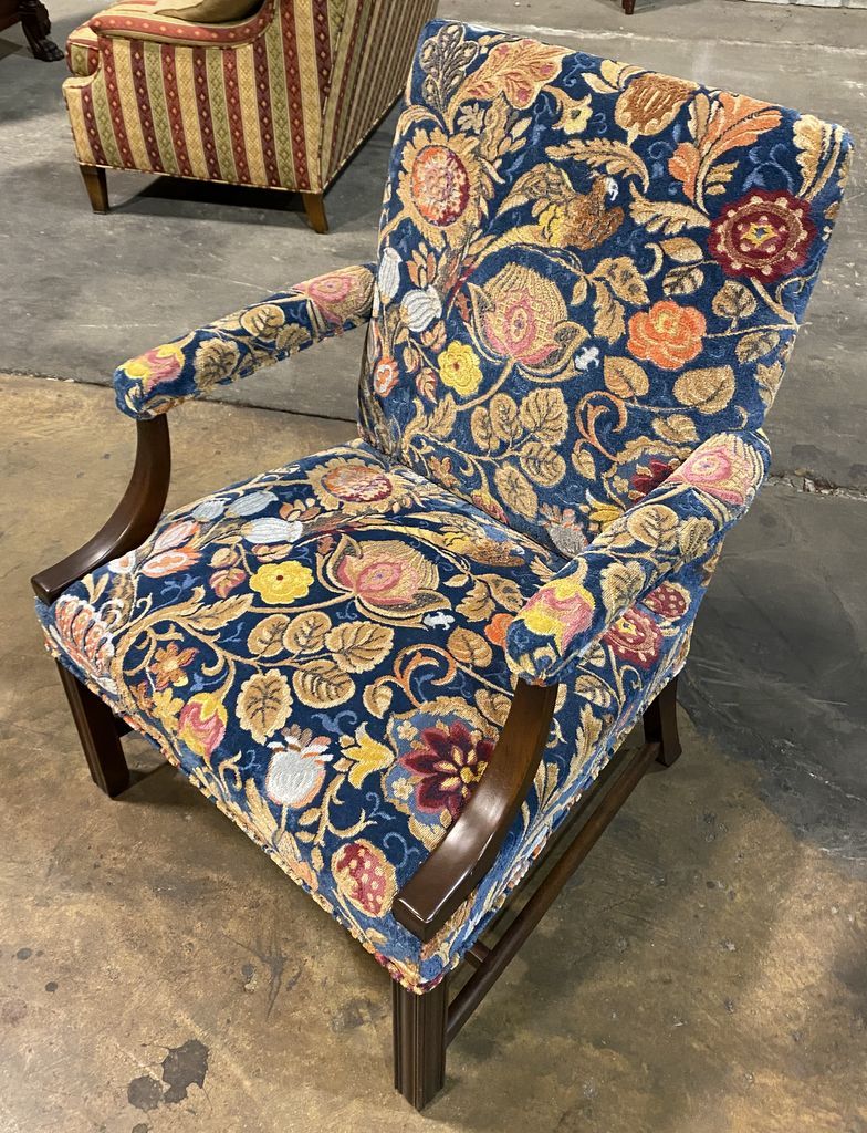 Floral Upholstery Arm Chair, cherry framed, good condition. Row 5 Floral Upholstery Arm Chair, cherry framed, good condition. Row 5