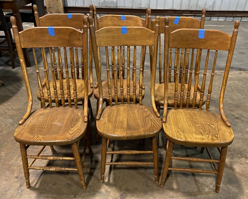 501 Six Vintage Oak Spindle Back Dining Chairs