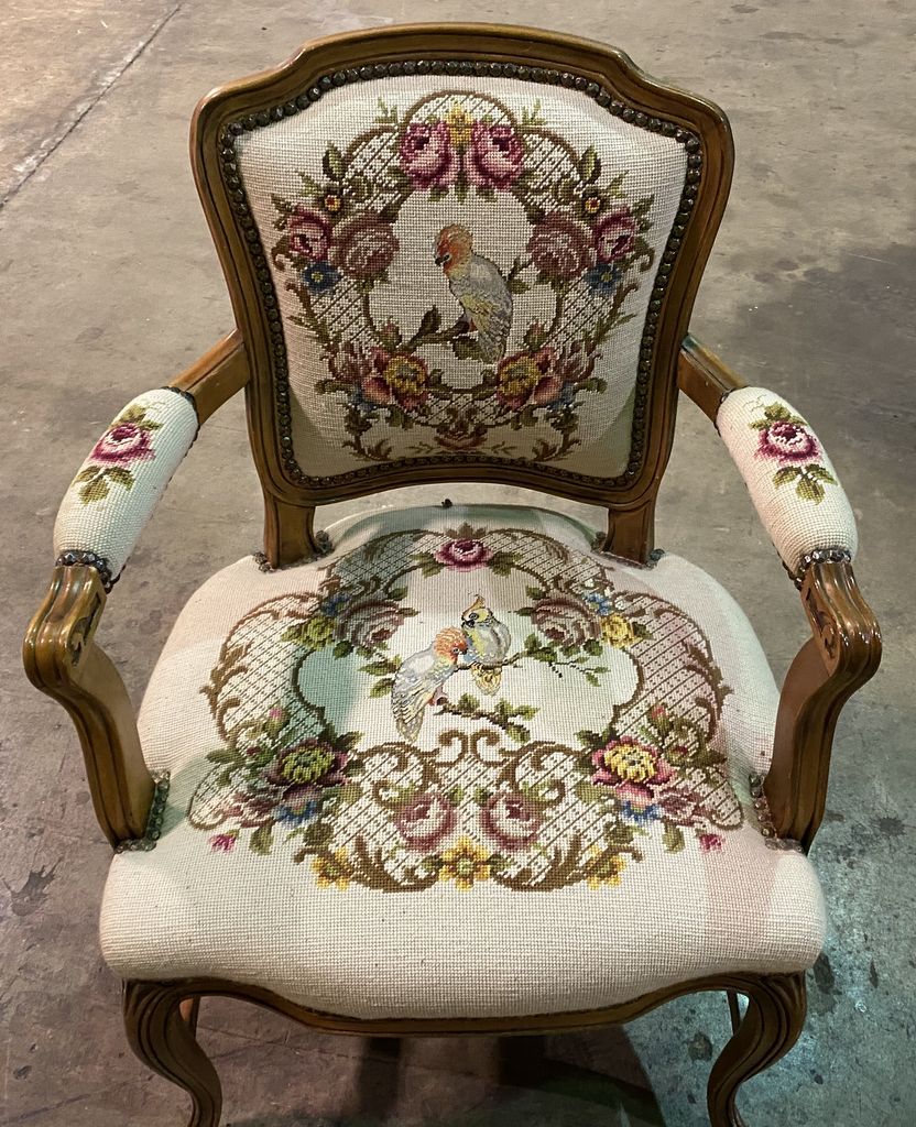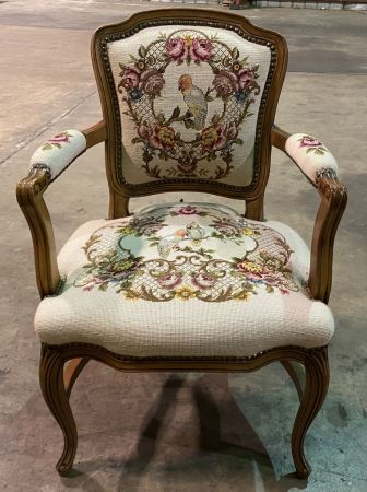 French Style Accent Arm Chair, cross stitch cushion. French Style Accent Arm Chair, cross stitch cushion.
