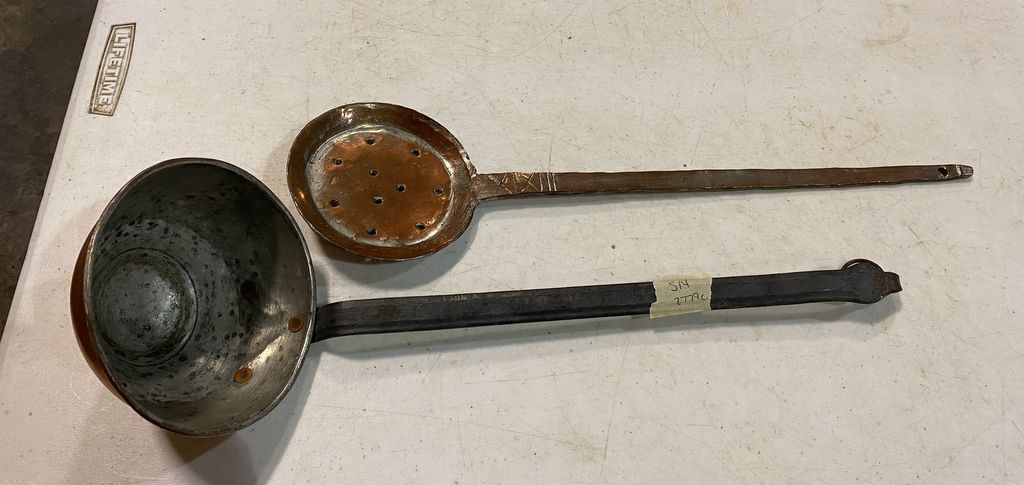 Primitive Copper Skimming Spoon and Ladle, Location Metal Shelves Primitive Copper Skimming Spoon and Ladle, Location Metal Shelves