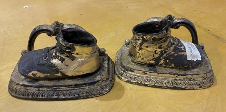 Pair of Vintage Baby Shoes, has tarnish, Location Metal Shelves Pair of Vintage Baby Shoes, has tarnish, Location Metal Shelves