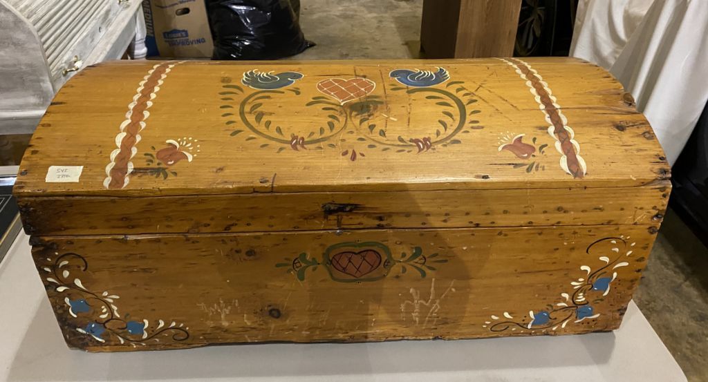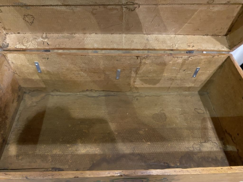 Primitive Hand Crafted Wedding Box, 19th Century, paper lined, 12"h., 32"w. Location Metal Shelves Primitive Hand Crafted Wedding Box, 19th Century, paper lined, 12"h., 32"w. Location Metal Shelves