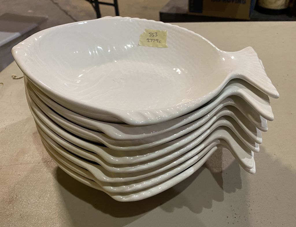 9 Ceramic Fish Trays, 10 1/2". Location Metal Shelves 9 Ceramic Fish Trays, 10 1/2". Location Metal Shelves