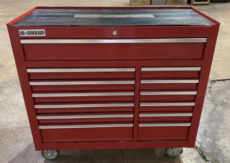 US General Tool Box, needs key, it is locked, has wheels. Row 9 US General Tool Box, needs key, it is locked, has wheels. Row 9