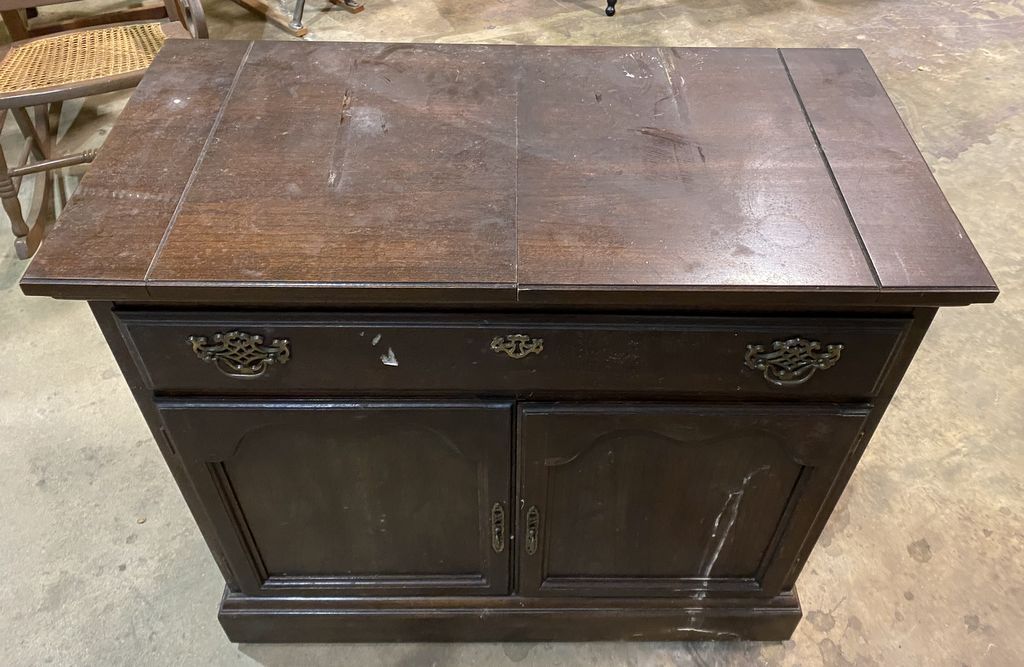 American Drew Cherry Server, Traditional Style, condition is worn, needs work. 37" w 15" d 32" h American Drew Cherry Server, Traditional Style, condition is worn, needs work. 37" w 15" d 32" h