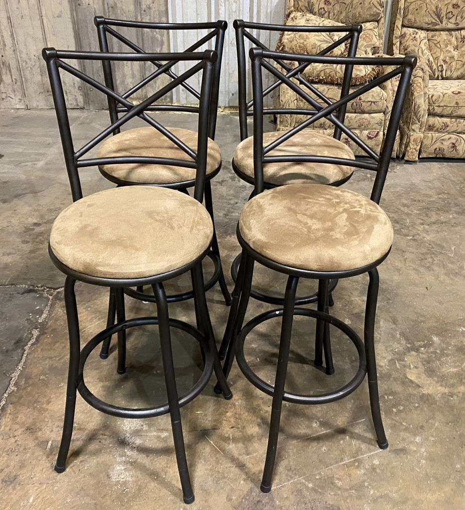 Four Modern Metal Bar Stools, suede style cushions. Four Modern Metal Bar Stools, suede style cushions.