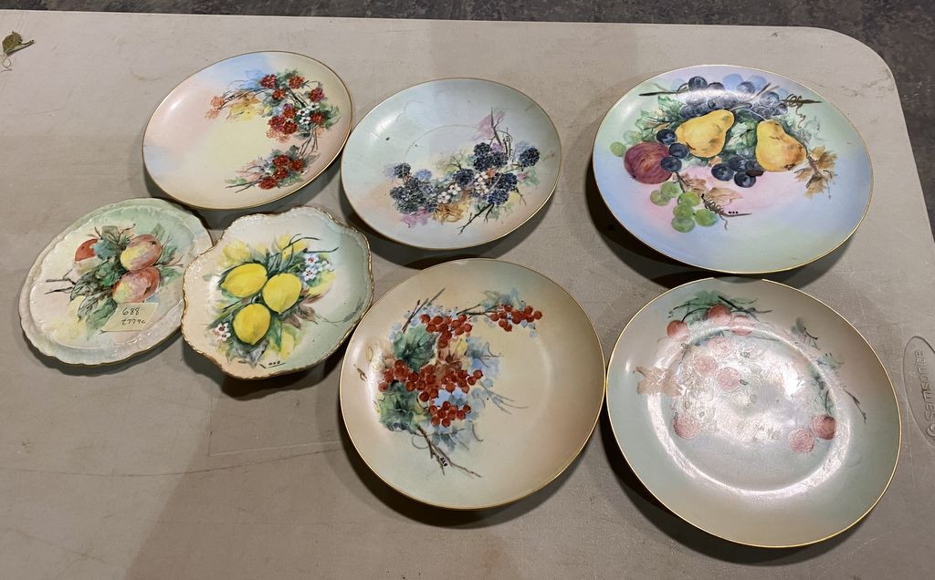 Signed GZS Porcelain Plates, hand painted. Location Metal Shelves Signed GZS Porcelain Plates, hand painted. Location Metal Shelves
