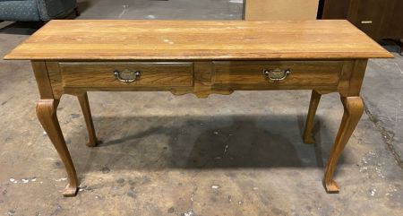 Kling Queen Anne Console Table, two drawers, finish is worn. 54" w 17" d 27" h. Row 1 Kling Queen Anne Console Table, two drawers, finish is worn. 54" w 17" d 27" h. Row 1