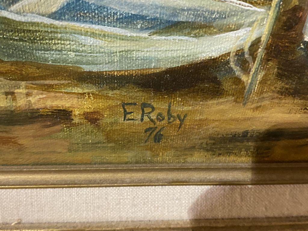 E. Roby 1976 Landscape Painting, on canvas, on canvas, framed, 30"h., 36"w. Row 10 E. Roby 1976 Landscape Painting, on canvas, on canvas, framed, 30"h., 36"w. Row 10