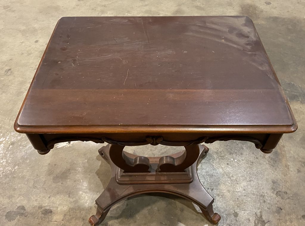 Victorian Style Pedestal Lamp Table, needs wear. 22" w 15" d 22" h. Row 4 Victorian Style Pedestal Lamp Table, needs wear. 22" w 15" d 22" h. Row 4