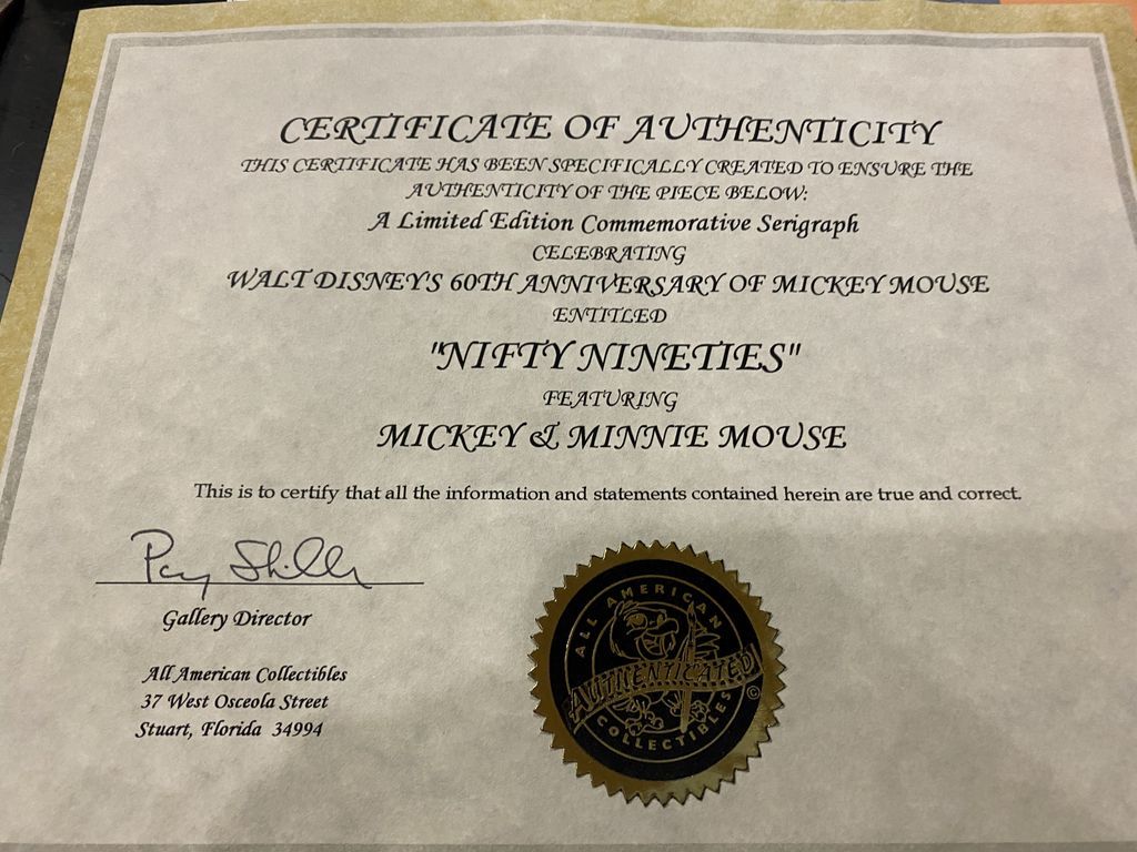710 Walt Disneys Limited Edition Serigraph "Nifty Nineties" Framed