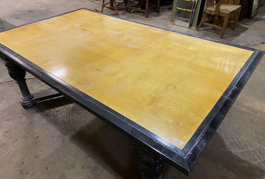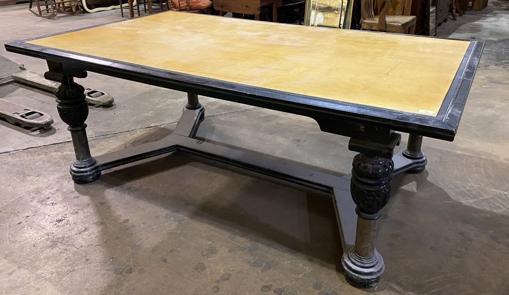 Large Jacobean Style Dining Table, black painted and natural wood top, 31"h., 81"long, 48"w. Large Jacobean Style Dining Table, black painted and natural wood top, 31"h., 81"long, 48"w.