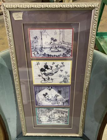Framed Mickey Mouse Stretching's, matted, 27"h. 13"w. Framed Mickey Mouse Stretching's, matted, 27"h. 13"w.