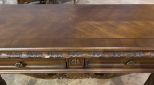 Italian Reproduction Console/Sofa Table, polyfoam trim and legs, two drawers, normal usage wear. 54" w 22" d 35" h. Row 9 Italian Reproduction Console/Sofa Table, polyfoam trim and legs, two drawers, normal usage wear. 54" w 22" d 35" h. Row 9