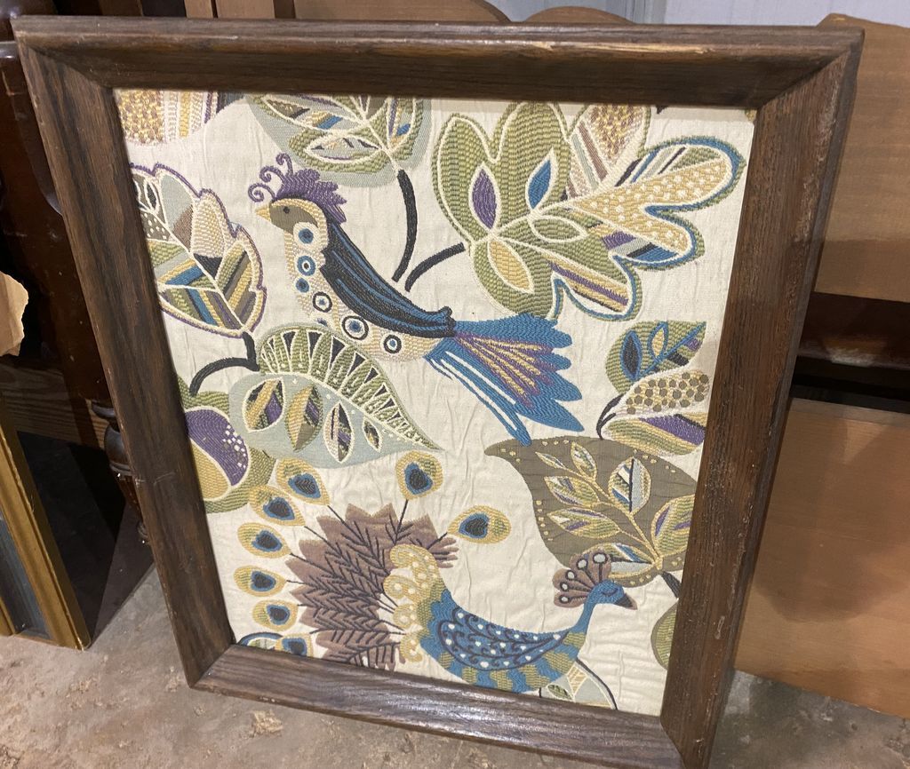 Framed Bird Design Quilt, glassed. 19" x 22" Framed Bird Design Quilt, glassed. 19" x 22"