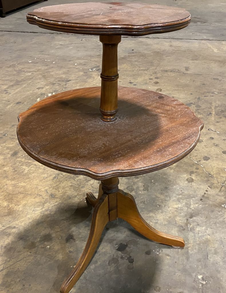 Vintage Mahogany Dumbwaiter Table, needs work on finish. 30" h 18" w Vintage Mahogany Dumbwaiter Table, needs work on finish. 30" h 18" w