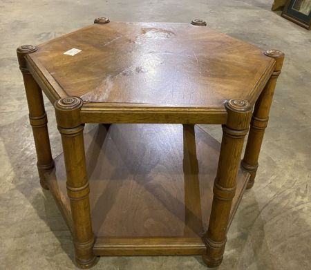 Octagon Oak finish Accent Table, rings on top, and moisture damage, 16"h., 20"dia. Octagon Oak finish Accent Table, rings on top, and moisture damage, 16"h., 20"dia.