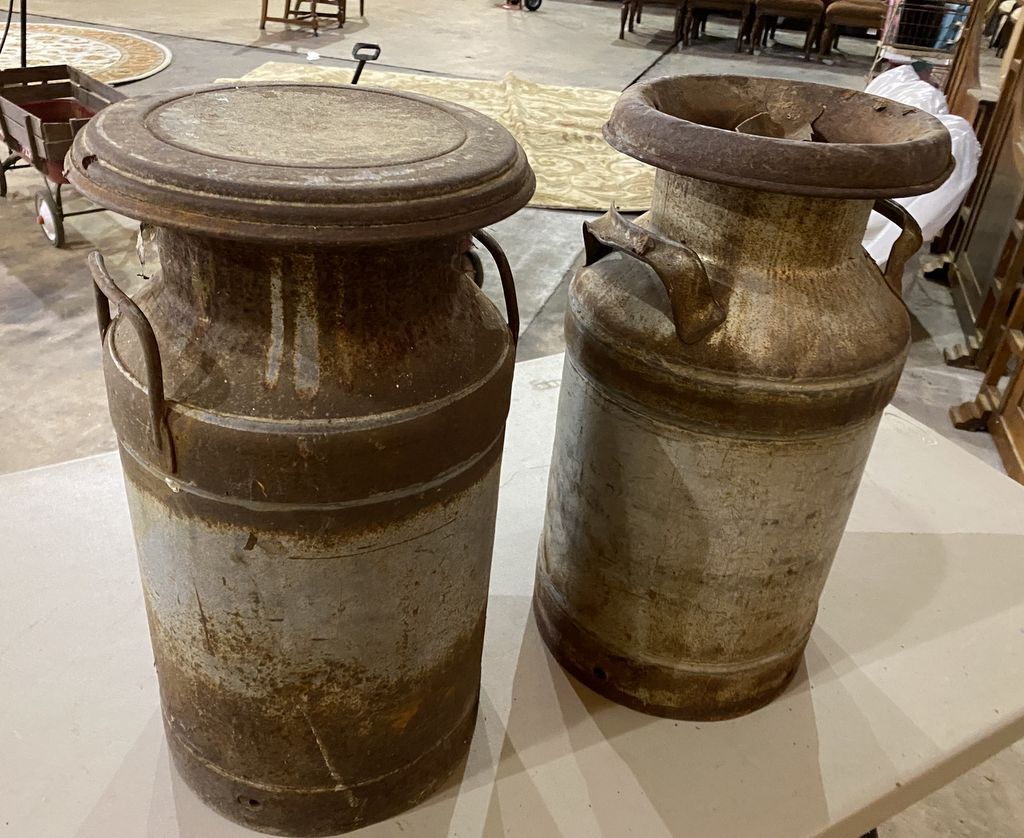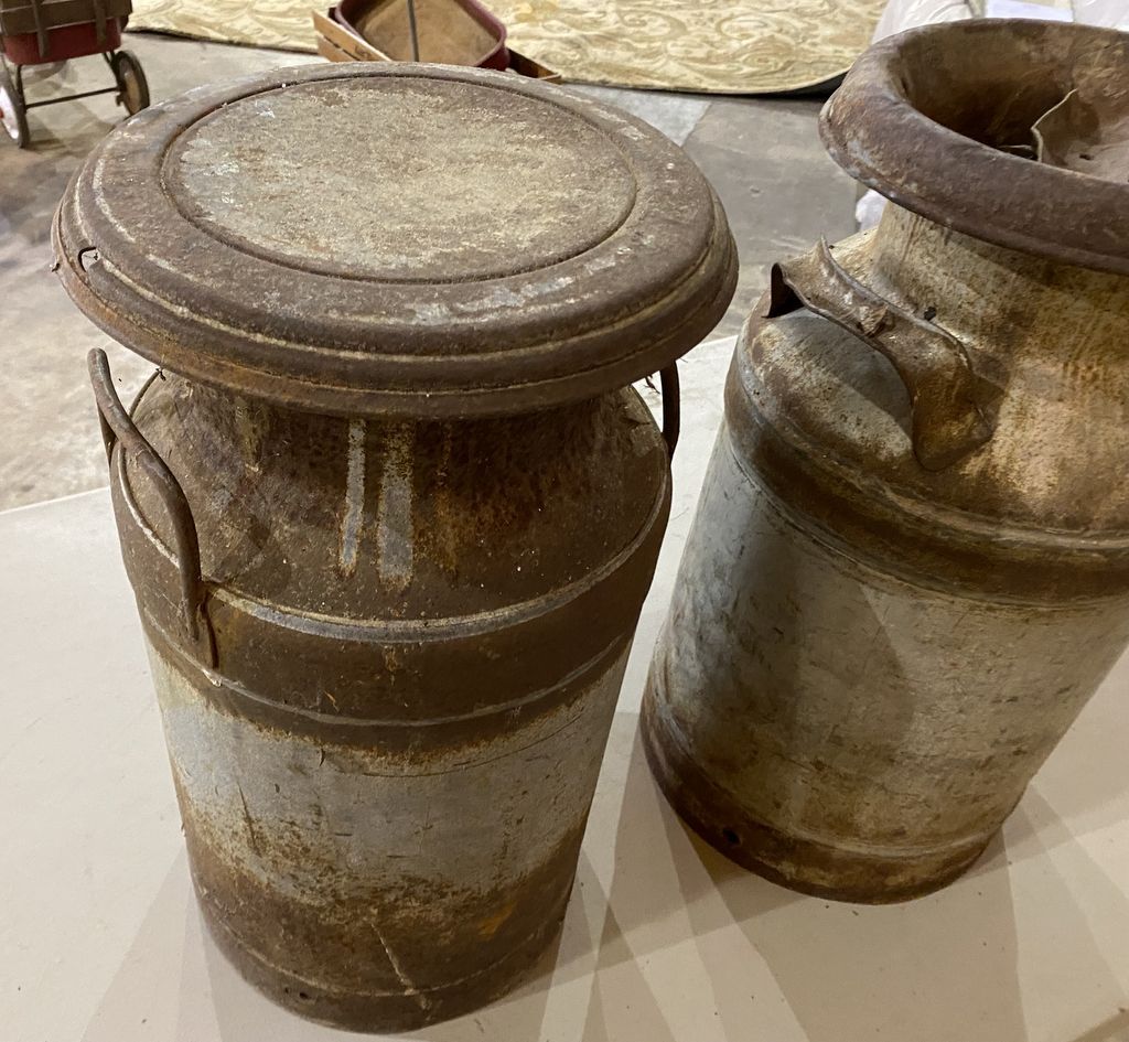 Two Old Metal Milk Cans, Location Metal Shelves Two Old Metal Milk Cans, Location Metal Shelves