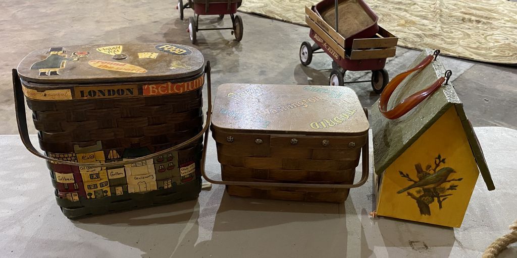 Three Vintage Basket Purses, Location Metal Shelves Three Vintage Basket Purses, Location Metal Shelves