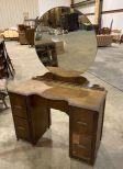 Art Deco Walnut Vanity, round back mirror, finish is worn, missing some veneer. 42" w 18" d Art Deco Walnut Vanity, round back mirror, finish is worn, missing some veneer. 42" w 18" d