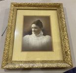 Gold Gilt Framed Portrait of Woman, matted. 20"h. 19"w. Location Metal Shelves Gold Gilt Framed Portrait of Woman, matted. 20"h. 19"w. Location Metal Shelves