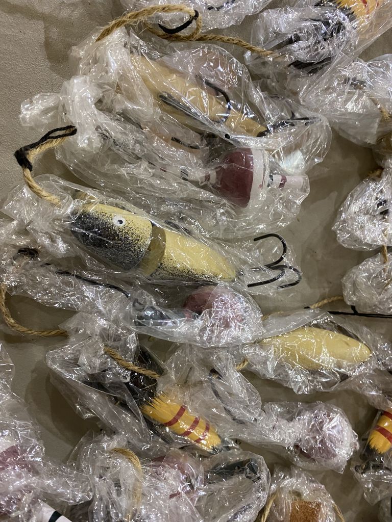 Assorted Group of Fishing Lure Ornaments, Location Metal Shelves Assorted Group of Fishing Lure Ornaments, Location Metal Shelves