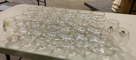Gold Rimmed Glasses, large collection of gold rimmed stemware. Gold Rimmed Glasses, large collection of gold rimmed stemware.