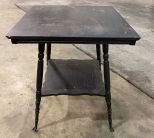 Antique Painted Oak Parlor Lamp Table, has worn condition. 24" w 24" d 29" h. Row 7 Antique Painted Oak Parlor Lamp Table, has worn condition. 24" w 24" d 29" h. Row 7