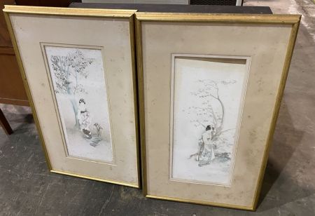 Pair of Geisha Girl Prints, matted, framed. 22" x 35" Pair of Geisha Girl Prints, matted, framed. 22" x 35"