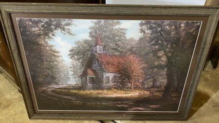 Old Church Print Signed and Numbered, framed. 24"h., 35"w. Location Right Wall Old Church Print Signed and Numbered, framed. 24"h., 35"w. Location Right Wall